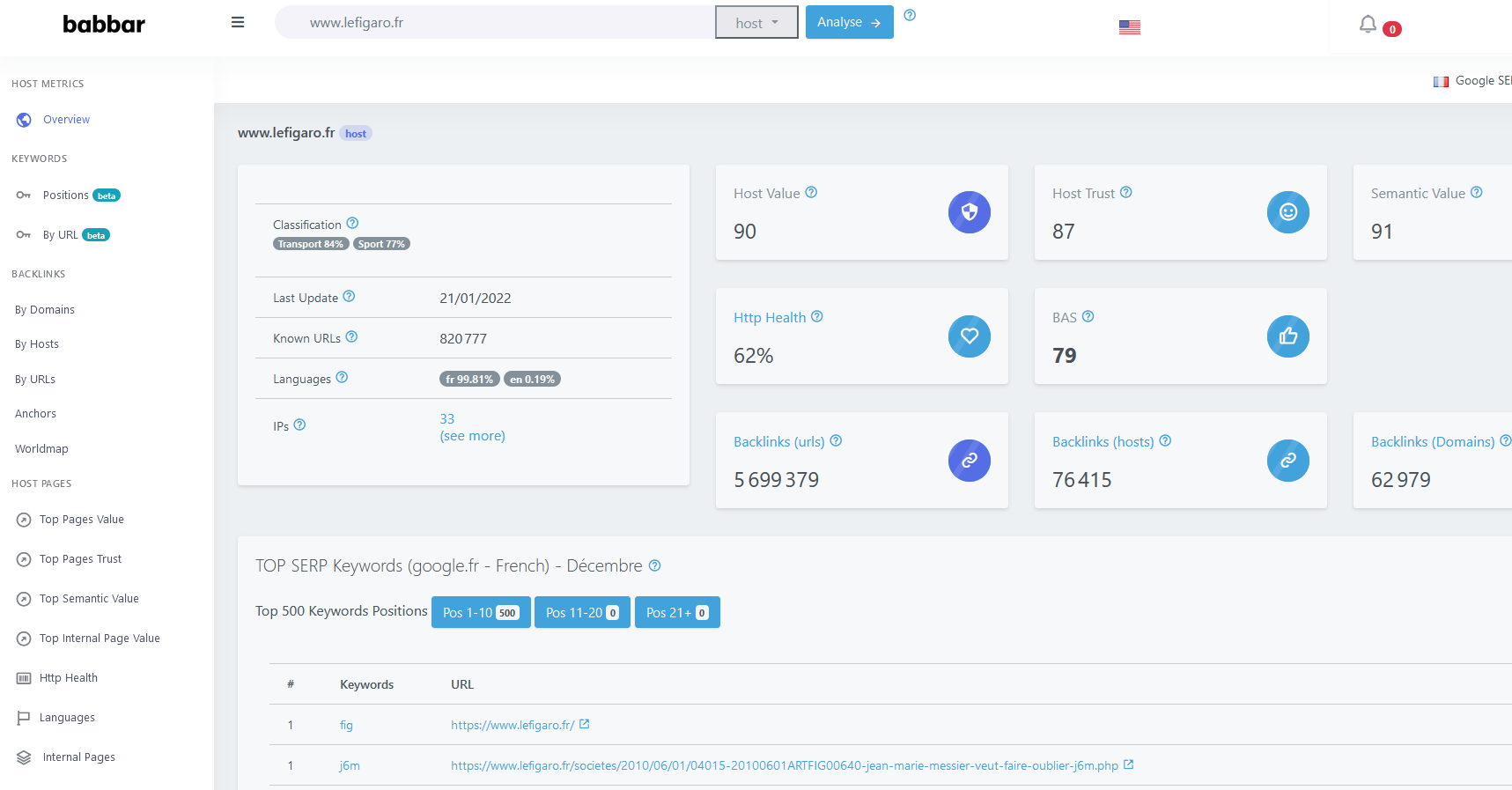- Analyses de mots-clés (BKS : Babbar Keyword Score) https://blog.babbar.tech/bks-babbar-keyword-score/