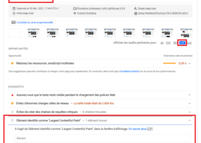 L'outil fournit une liste de recommandations pour améliorer la vitesse de chargement de la page. Les recommandations peuvent inclure la réduction de la taille des images, l'optimisation du code JavaScript et CSS, la mise en cache des ressources, et plus encore.
