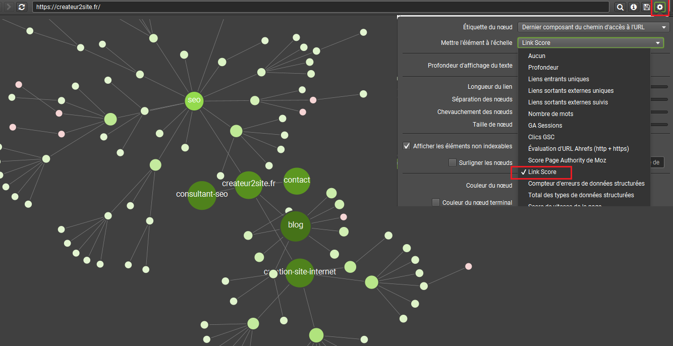Diagramme des forces, répartition du PageRank avec l'outil SEO ScreamingFrog