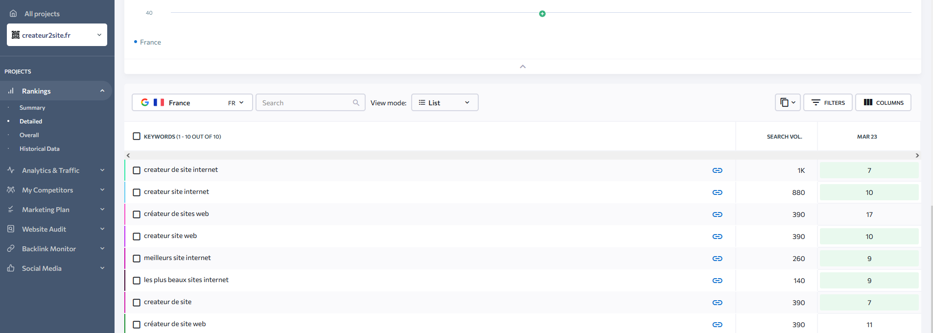 - Suivi des classements des mots-clés sur plusieurs moteurs de recherche