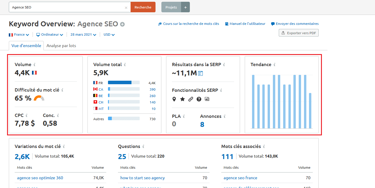 - Recherche et analyse de mots-clés