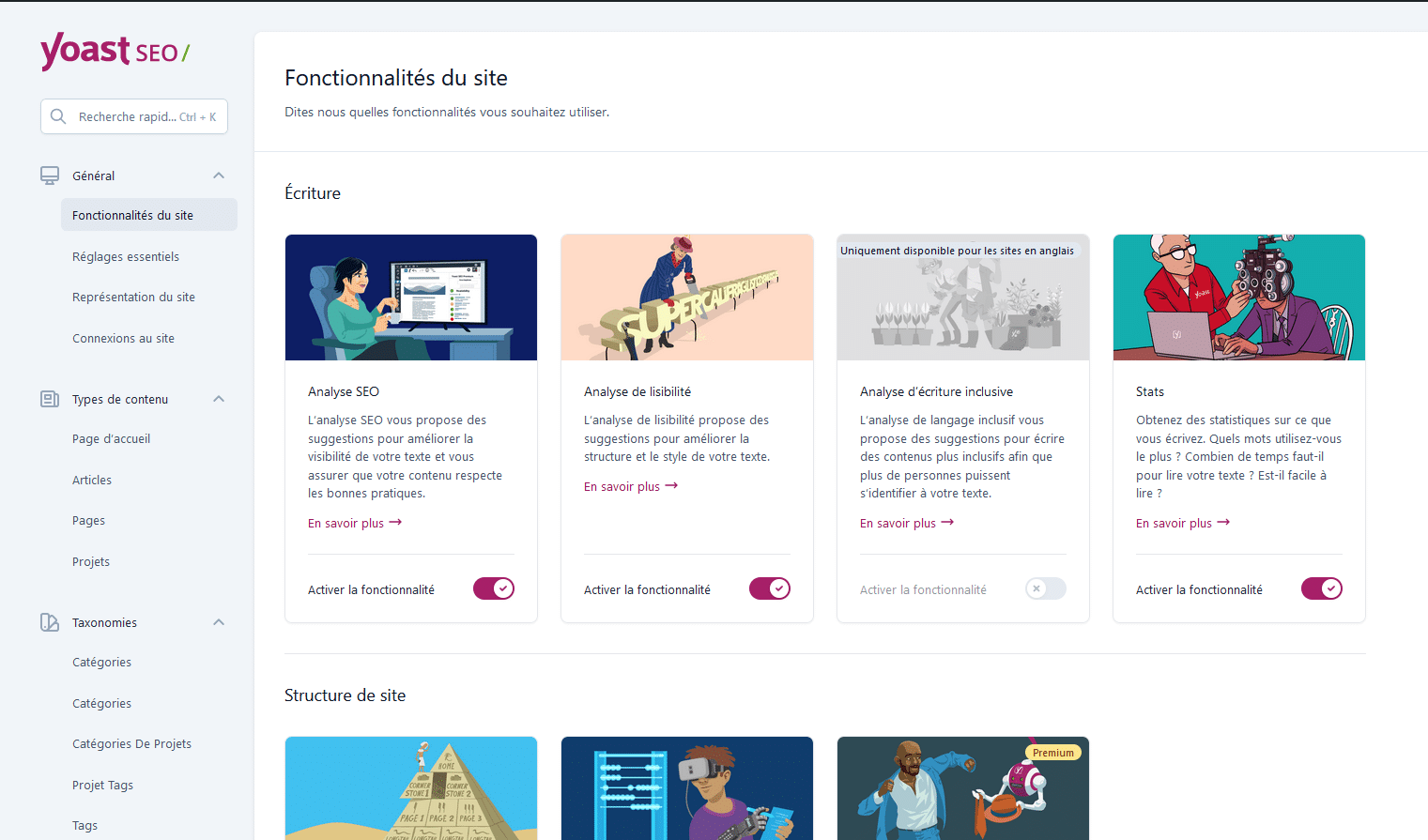Yoast SEO analyse votre contenu principal en temps réel et fournit des recommandations précises pour améliorer sa qualité SEO. L'outil vérifie la distribution des mots-clés, la longueur du contenu, la structure des titres, la lisibilité et la présence de liens internes et externes. Il propose également des suggestions pour optimiser votre méta-description et votre titre SEO, garantissant ainsi que votre contenu principal soit parfaitement optimisé pour les moteurs de recherche. Pour une analyse plus complète, des outils comme SE Ranking ou Semrush offrent des fonctionnalités avancées d'audit de contenu.