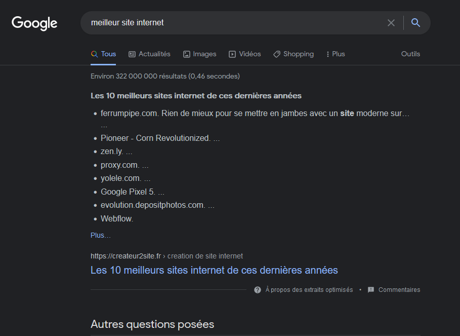 Pour ces requêtes simples, Google met à disposition un panneau de connaissance (Knowledge Panel) pour afficher directement la réponse depuis leurs résultats de recherches :